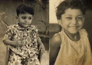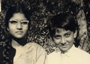 My parents (Chabi and Sunil Kumar Basu) in the charming little study of our flat. The jacket of Banglar Nari Andolan (Women’s movement in Bengal), the first account in Bangla of women’s struggle in colonial India, written by my mother and published by my father in 1945. Me and my elder sister Sarmistha, my only sibling. These are the only surviving photos of me taken as a child. As a child actor with Shabitri Chatterjee in the film Abasheshe, directed by Mrinal Sen. Playing the mad scientist, Mobius,