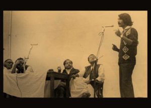 in Friedrich Durrenmatt’s The Physicists.Giving a speech on politics and theatre at my university, with the famous dramatist/actor Bijon Bhattacharya (farthest to the left) and the film maker Mrinal Sen